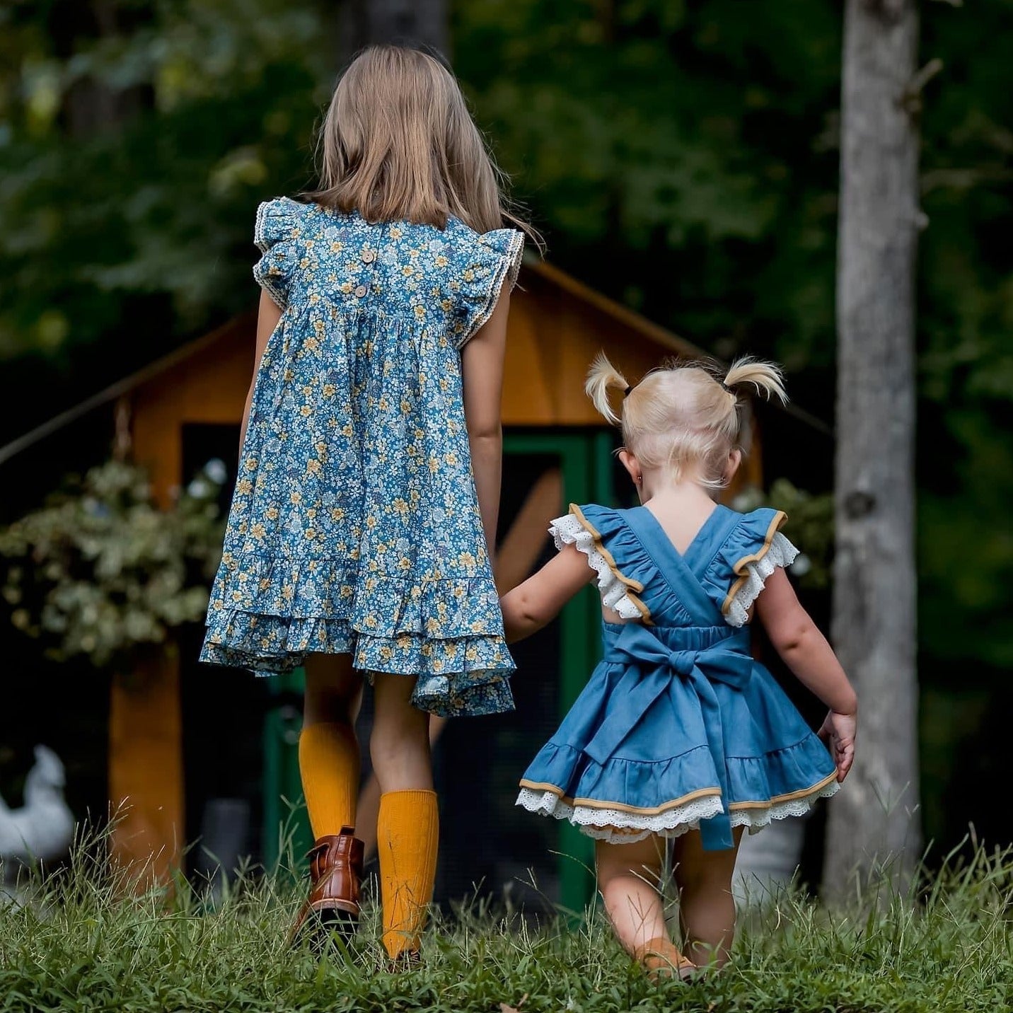 -Beautiful marigold and blue floral Bloomers 12m-6yrs and shorts 7-16