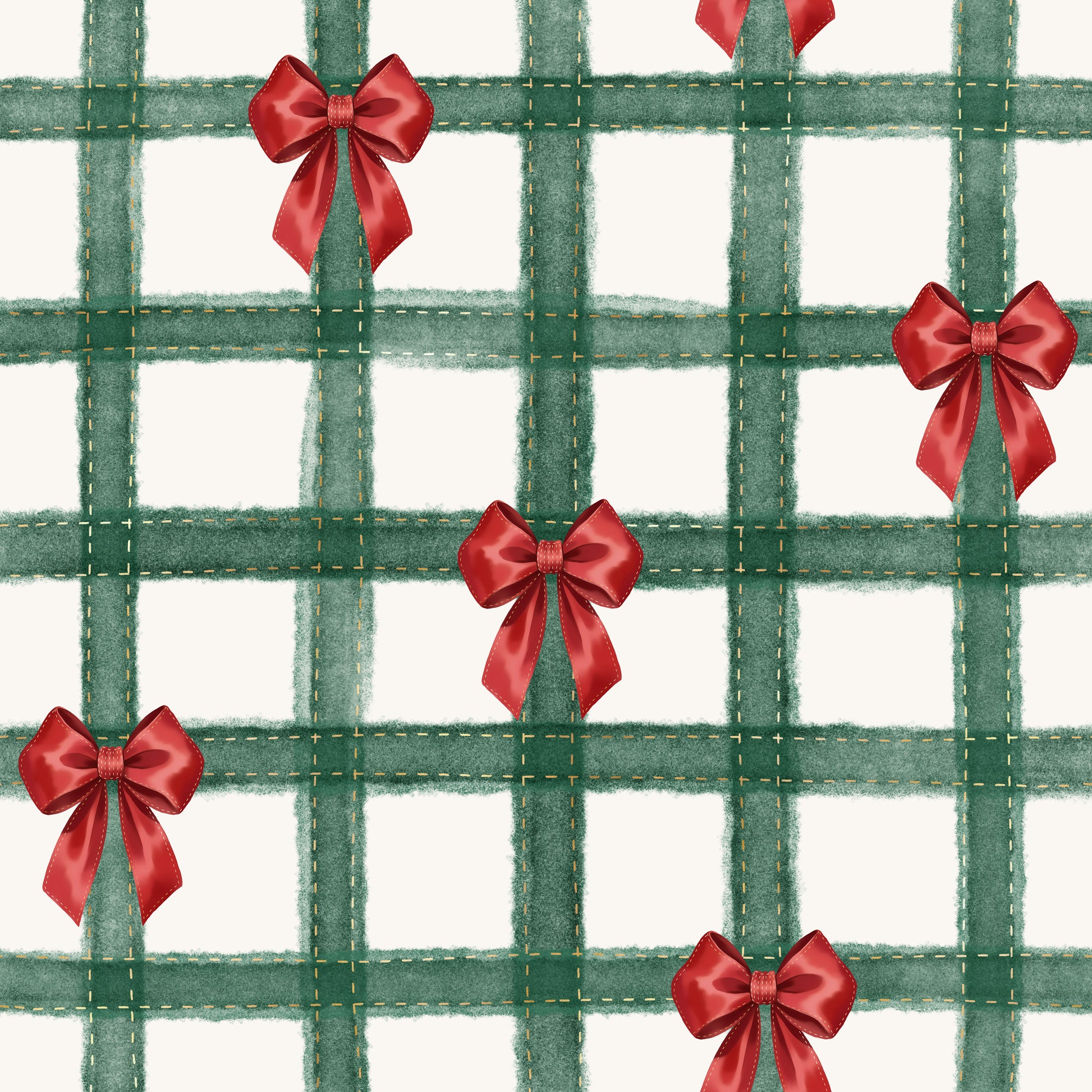 Green plaid with red bows, the perfect holiday print!