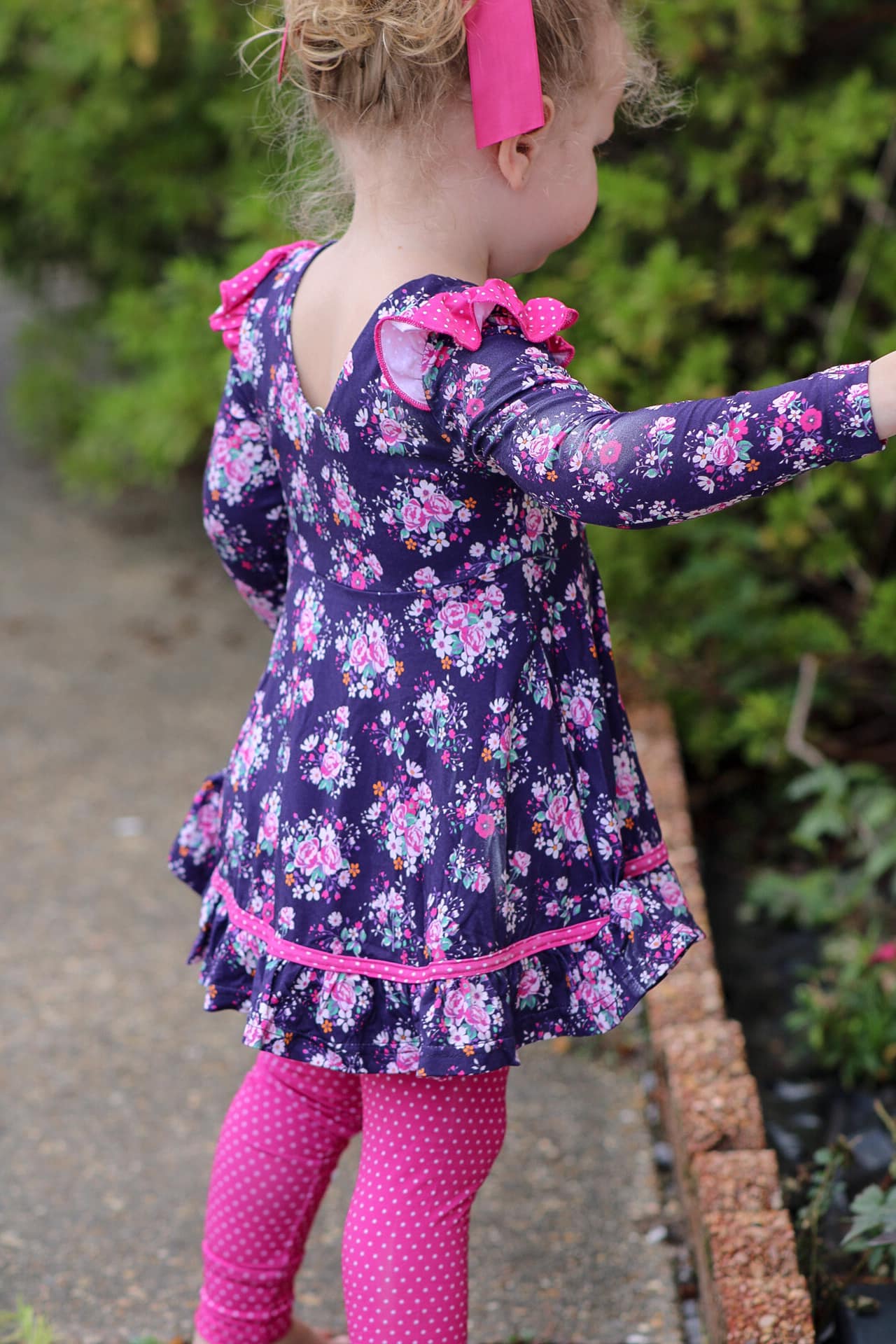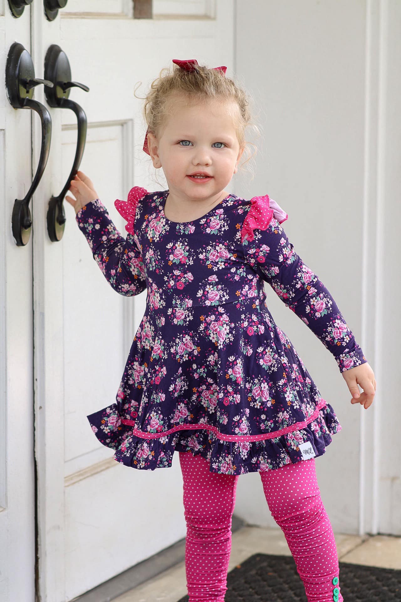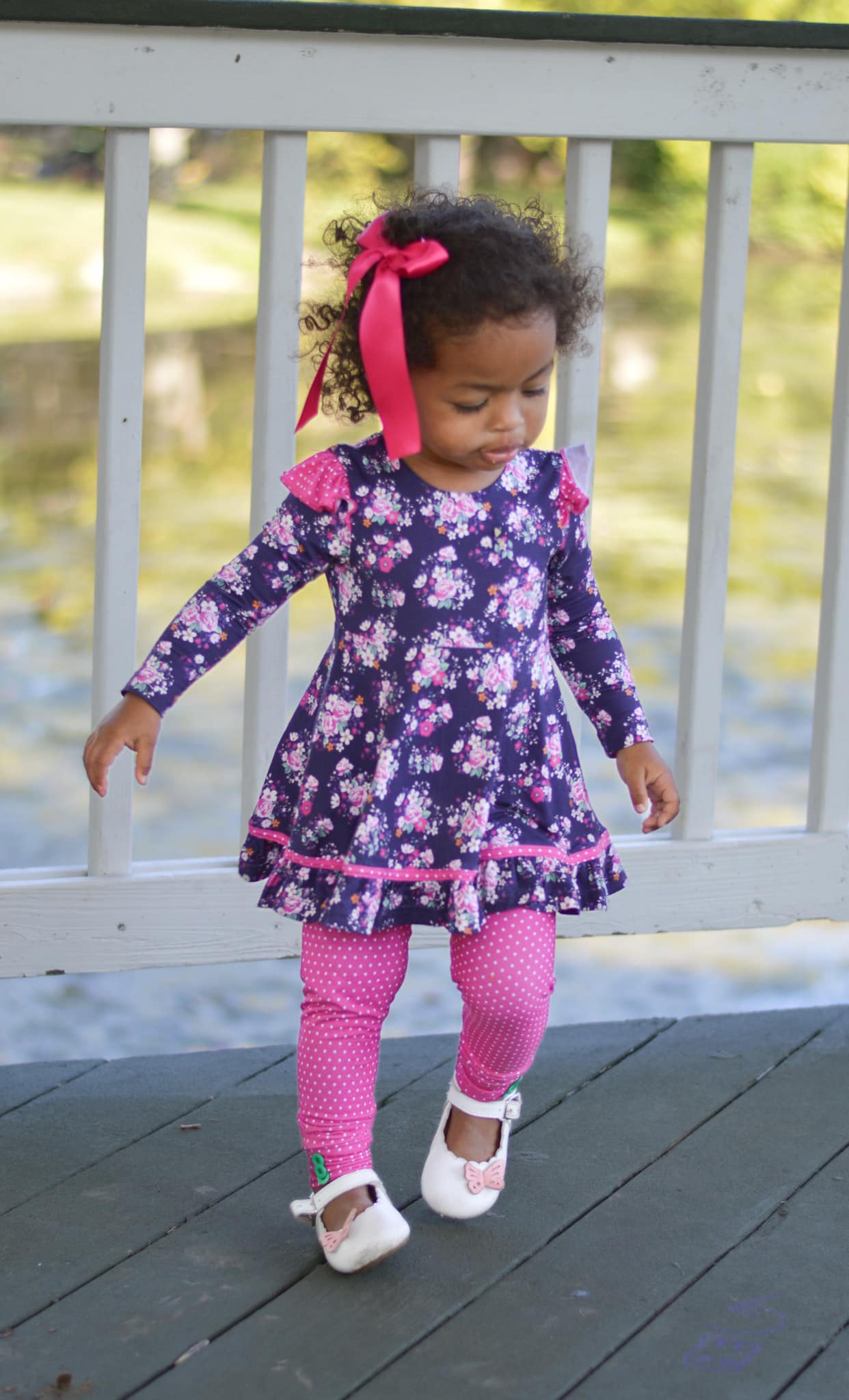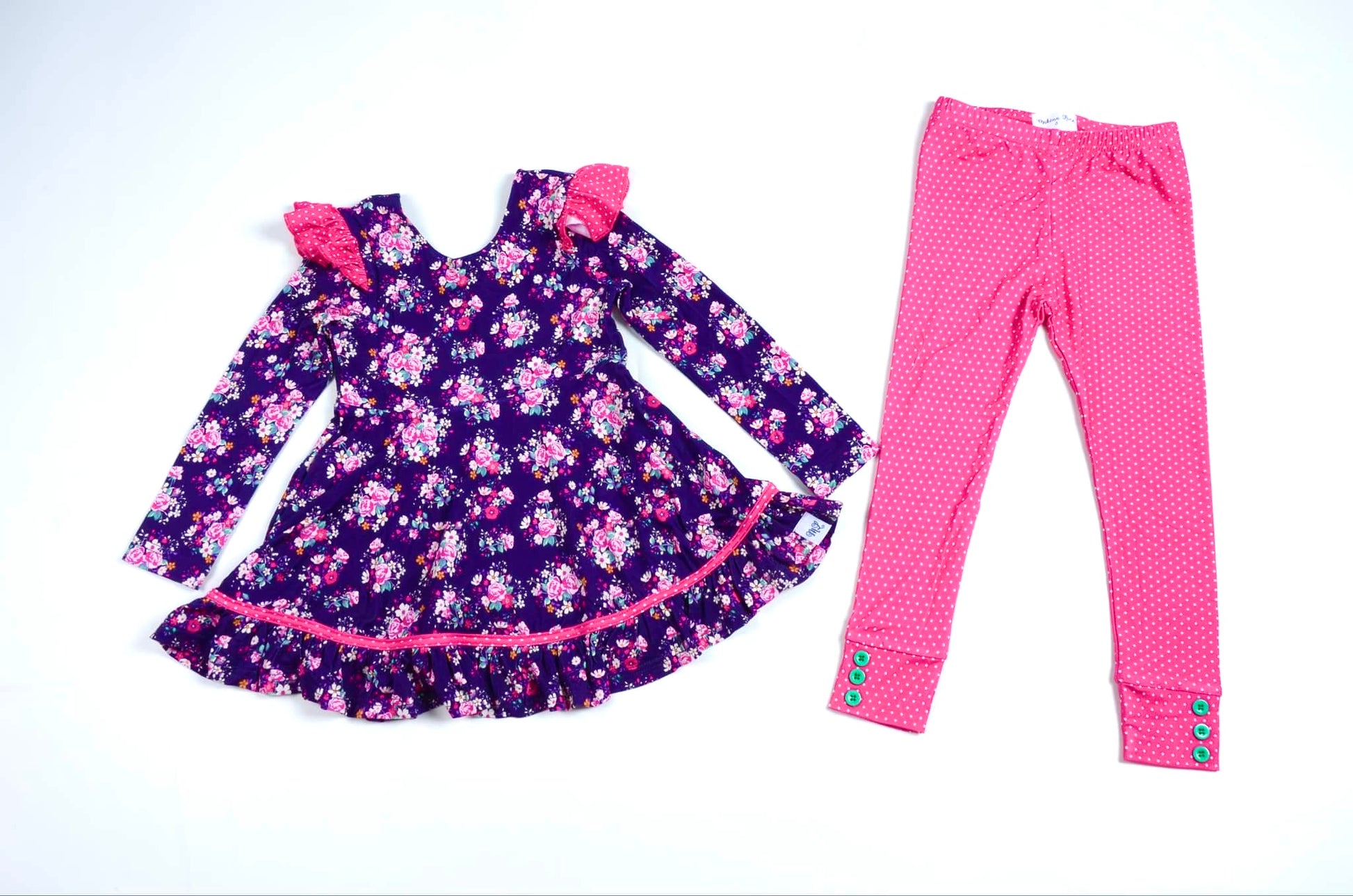 Tunic top, with flutter sleeves and matching button leggings in polka dot