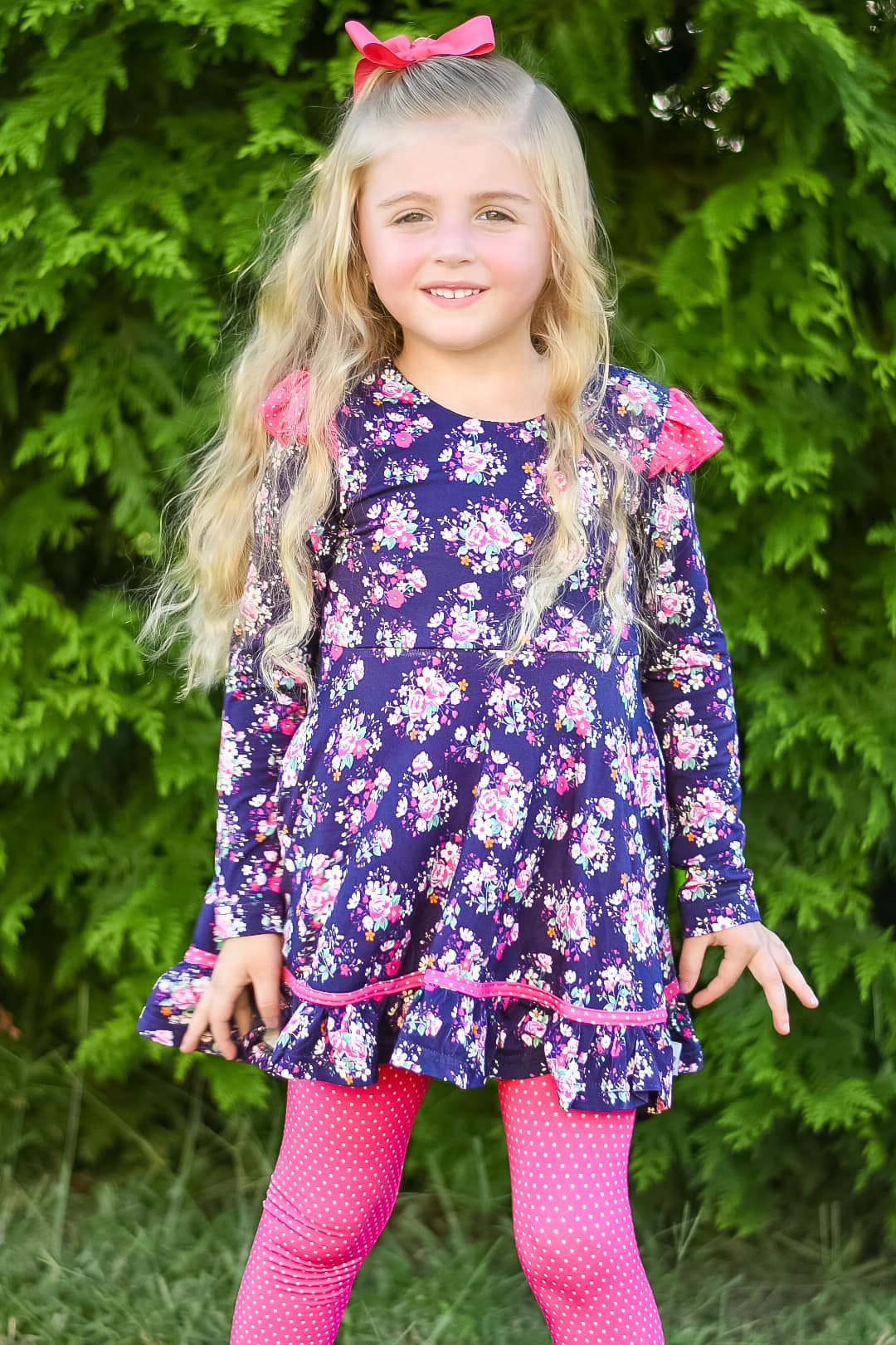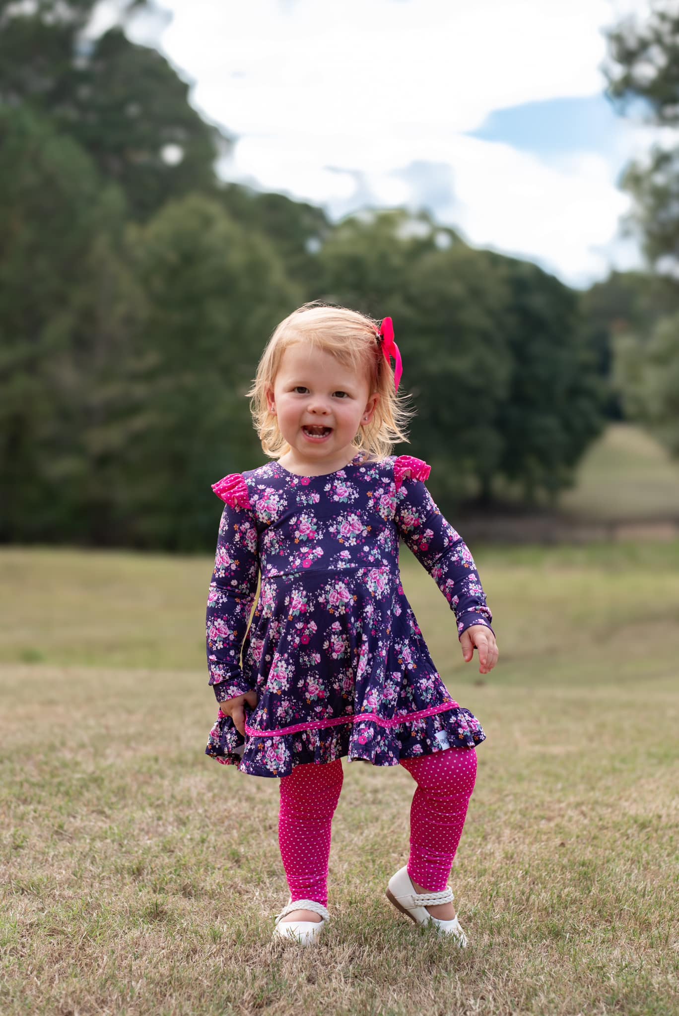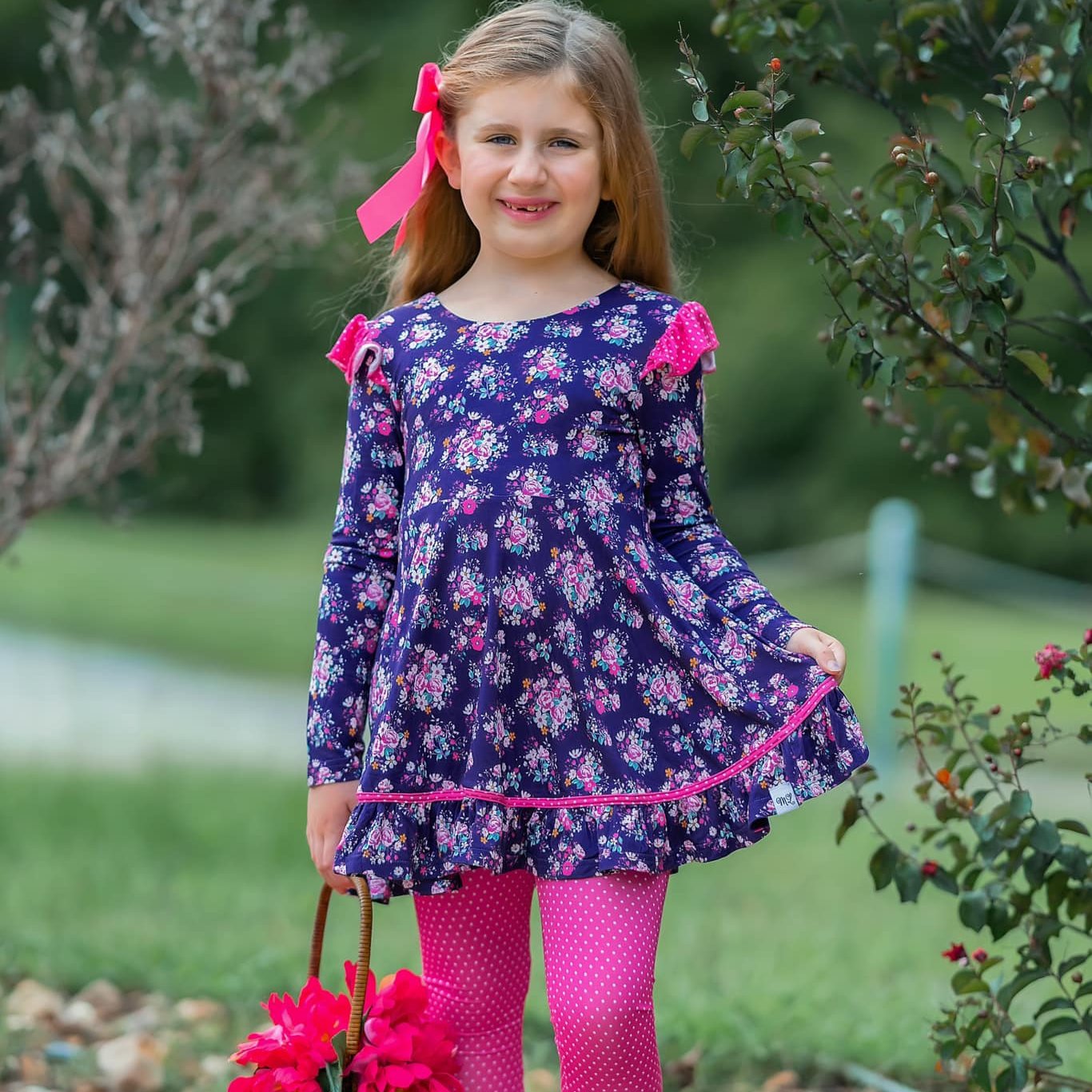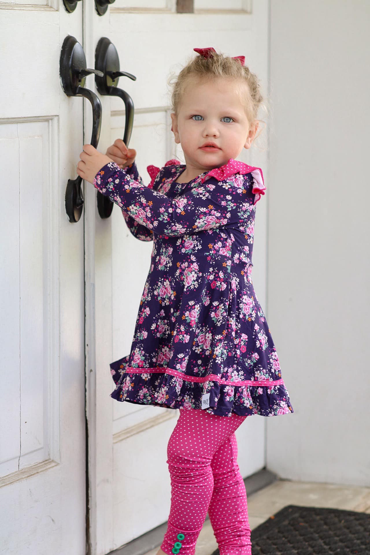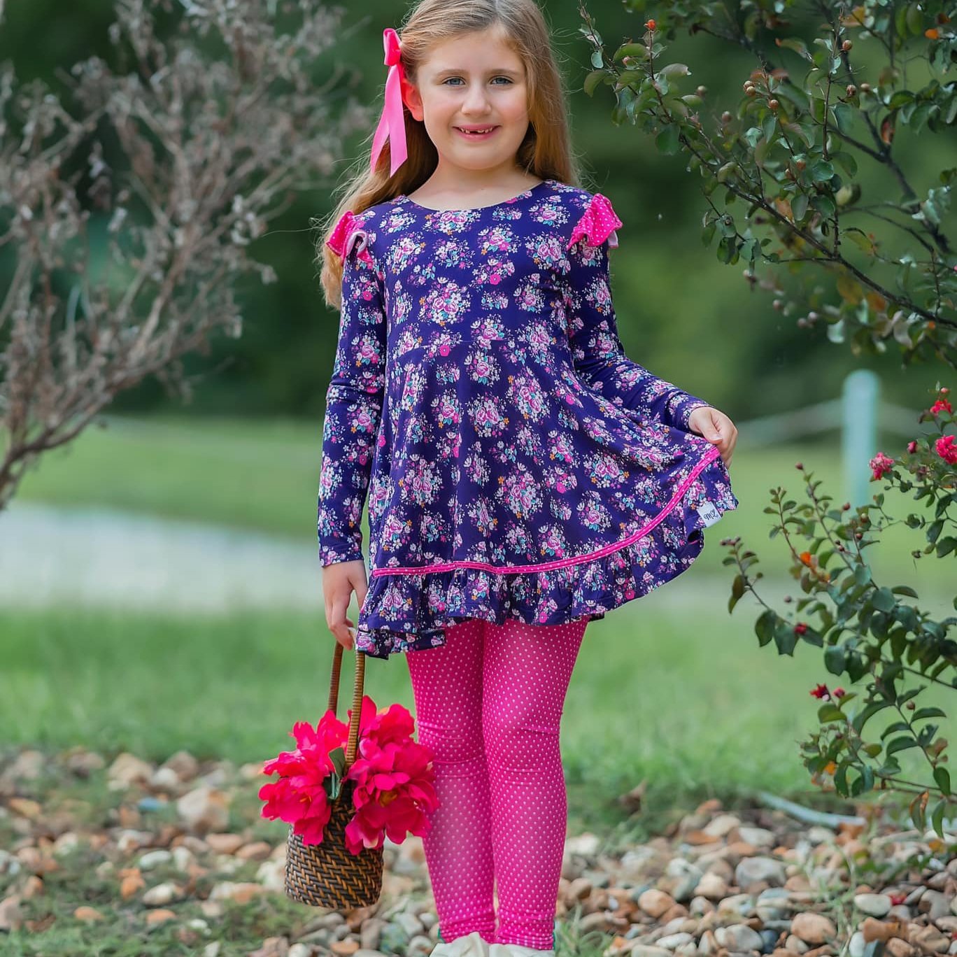 Tunic top, with flutter sleeves and matching button leggings in polka dot