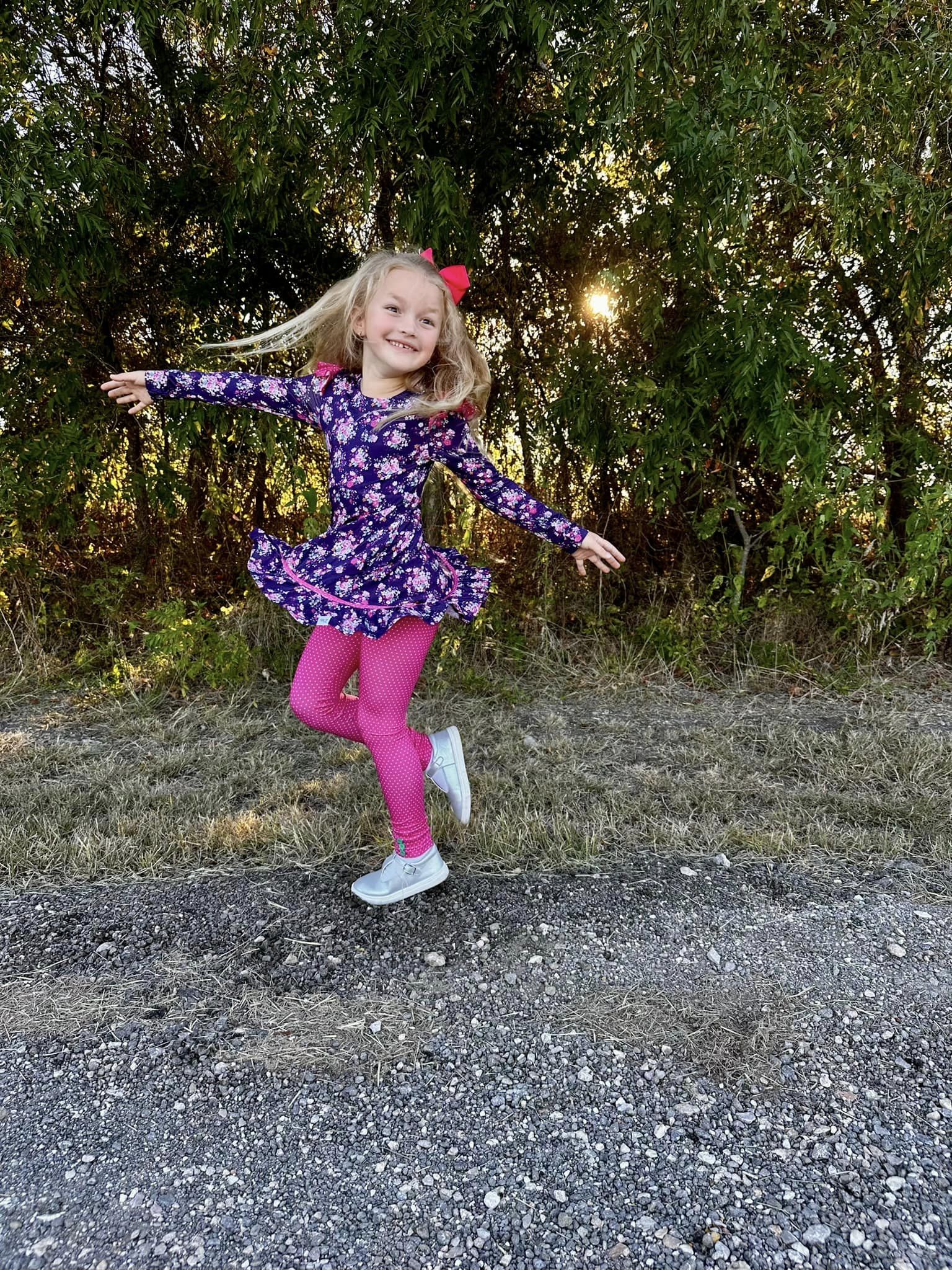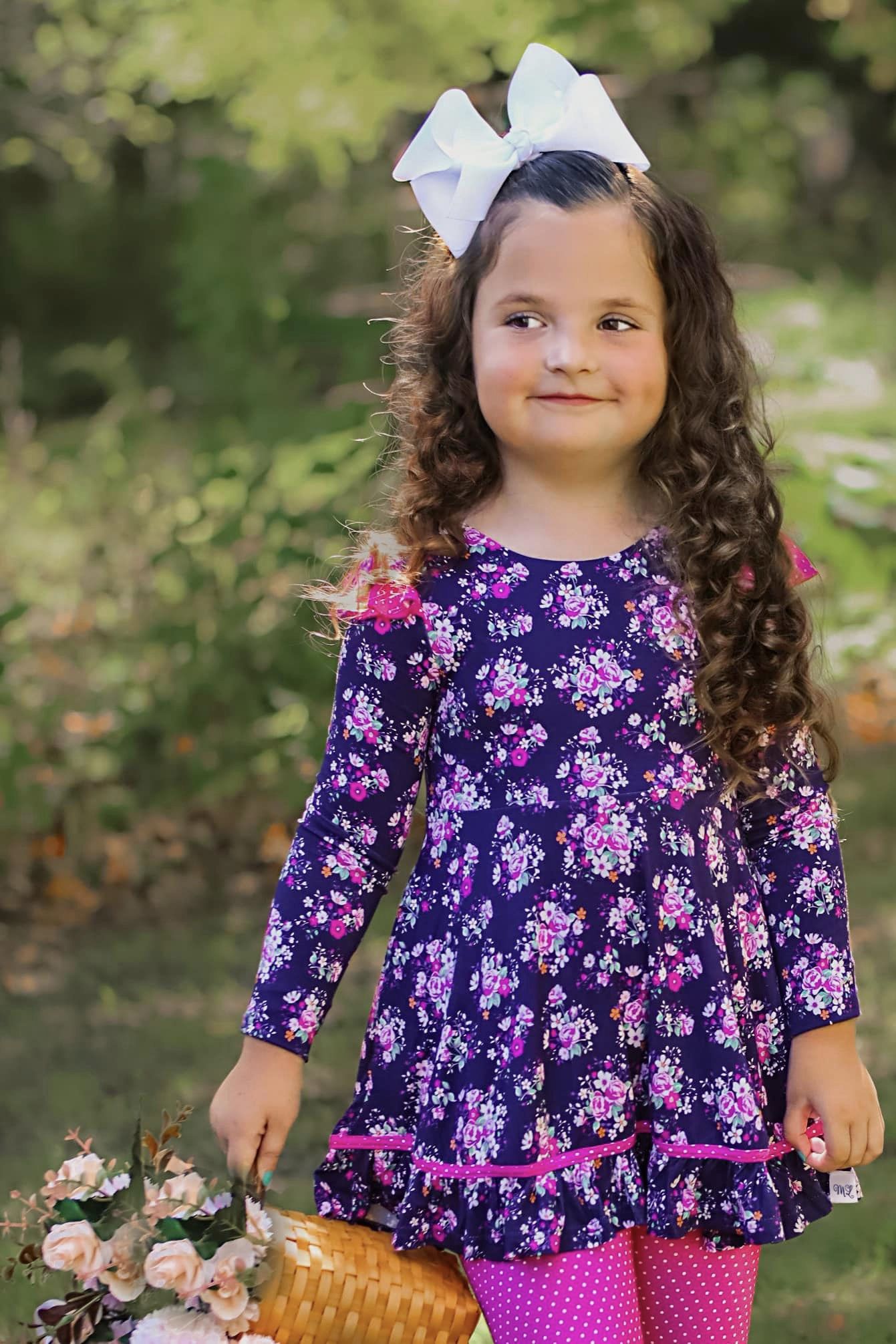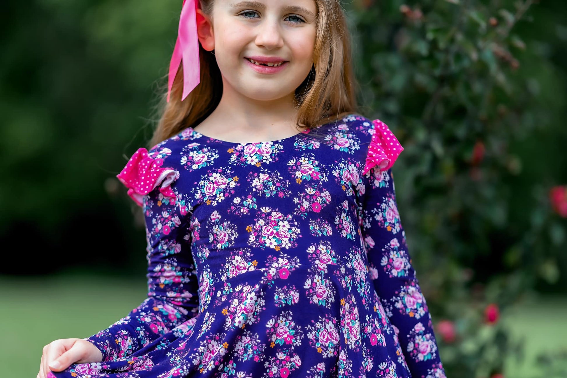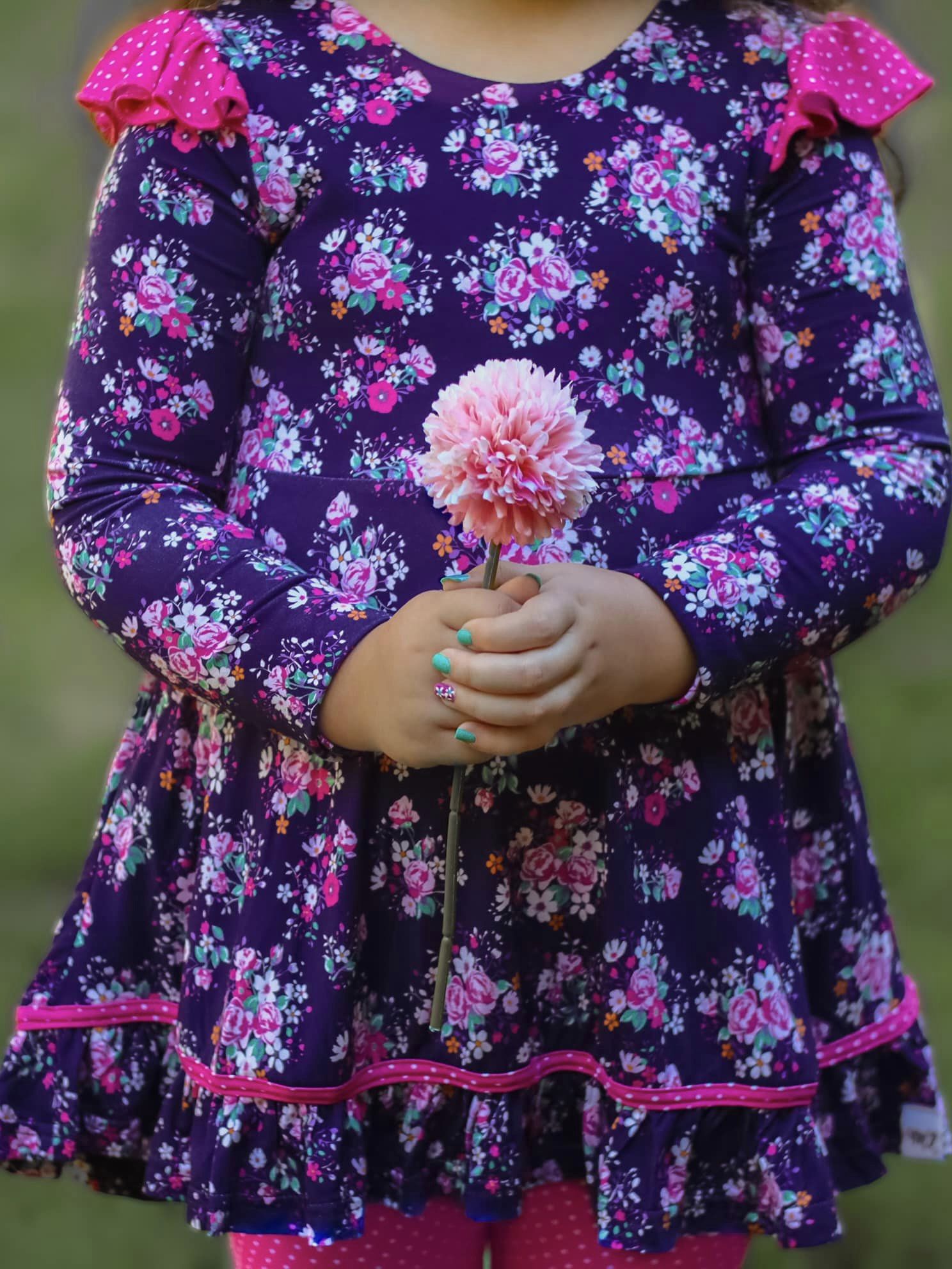 Tunic top, with flutter sleeves and matching button leggings in polka dot