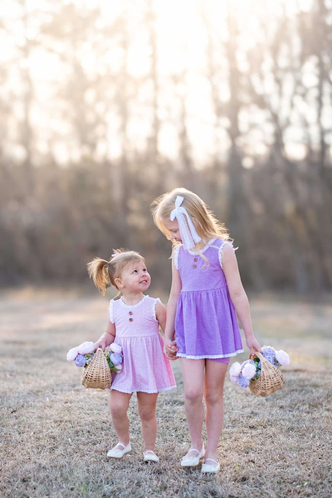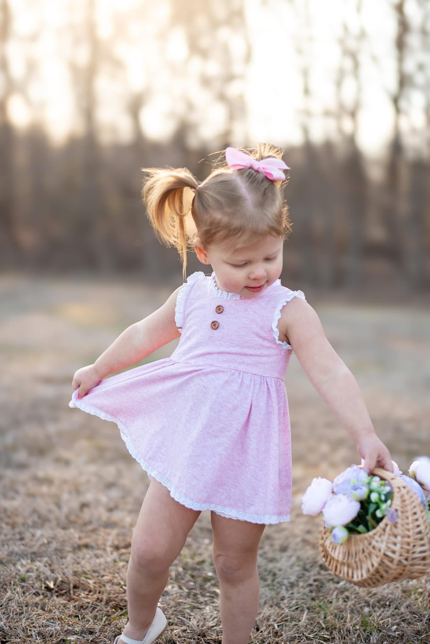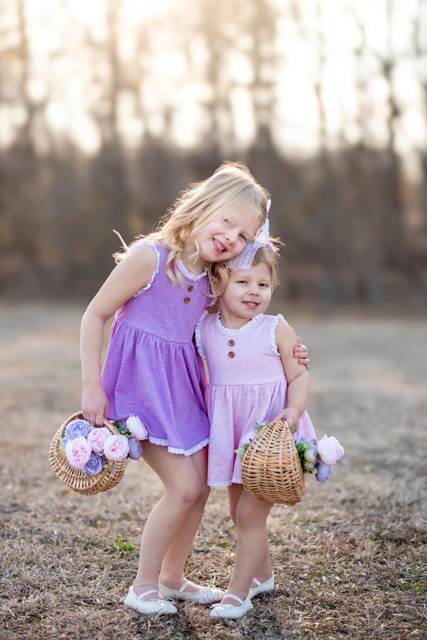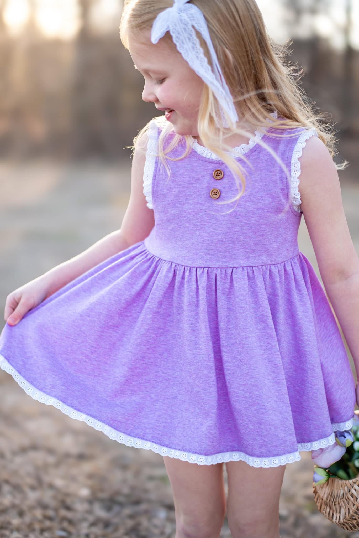 Heathered pastels in an adele set? YES! Blue, pink and lavender heathered fabric, super soft. Fully lined chests. Eyelet lace trim.