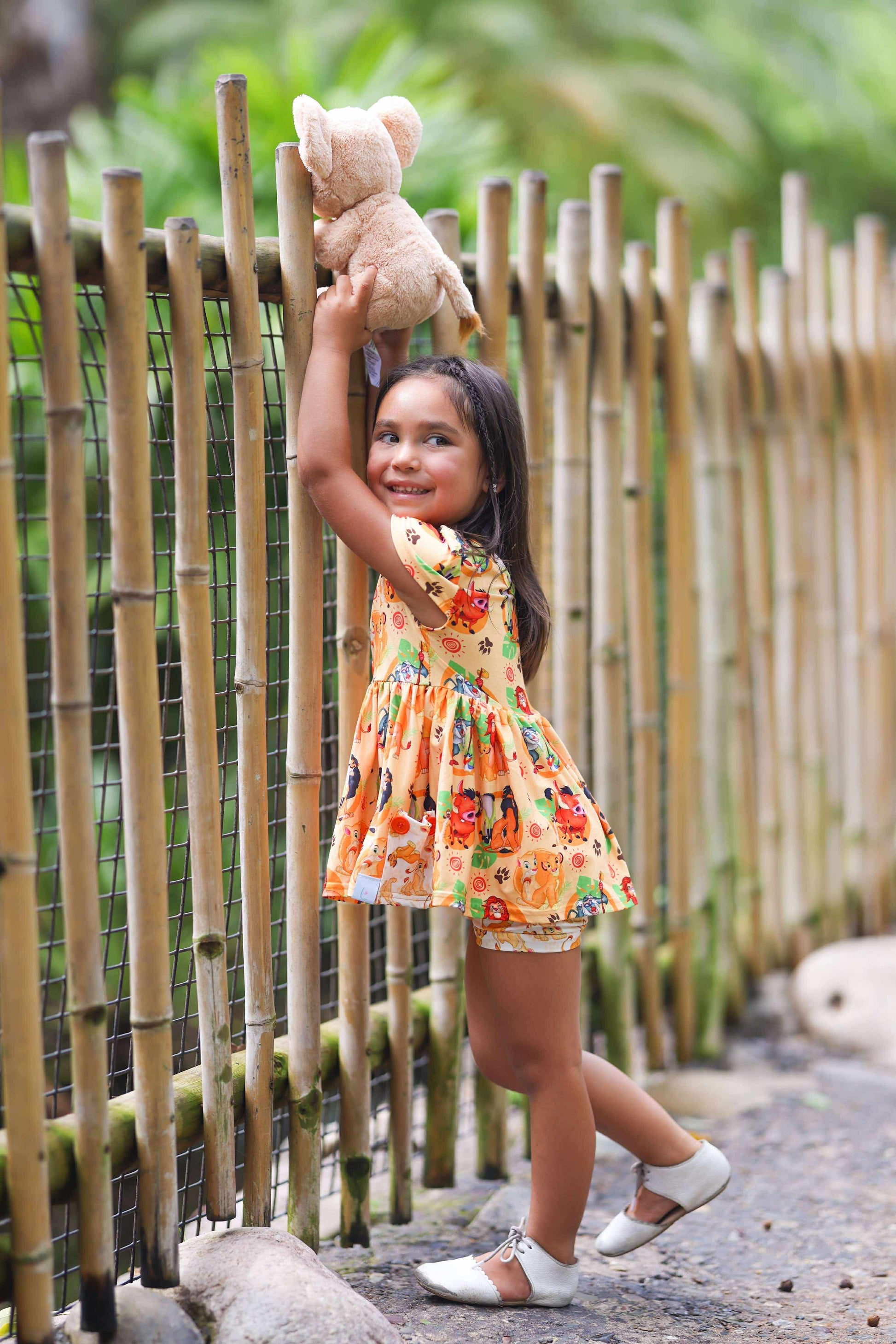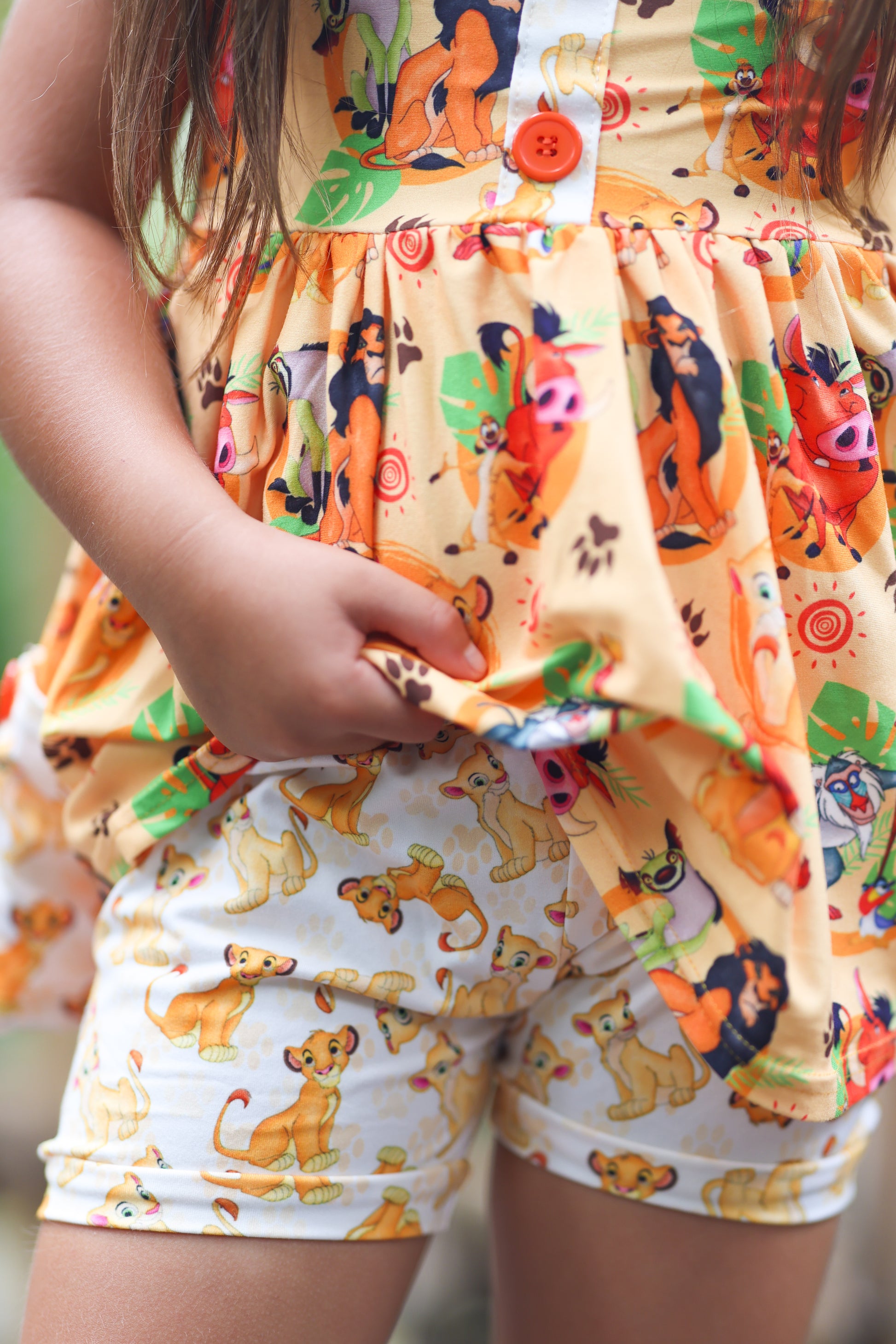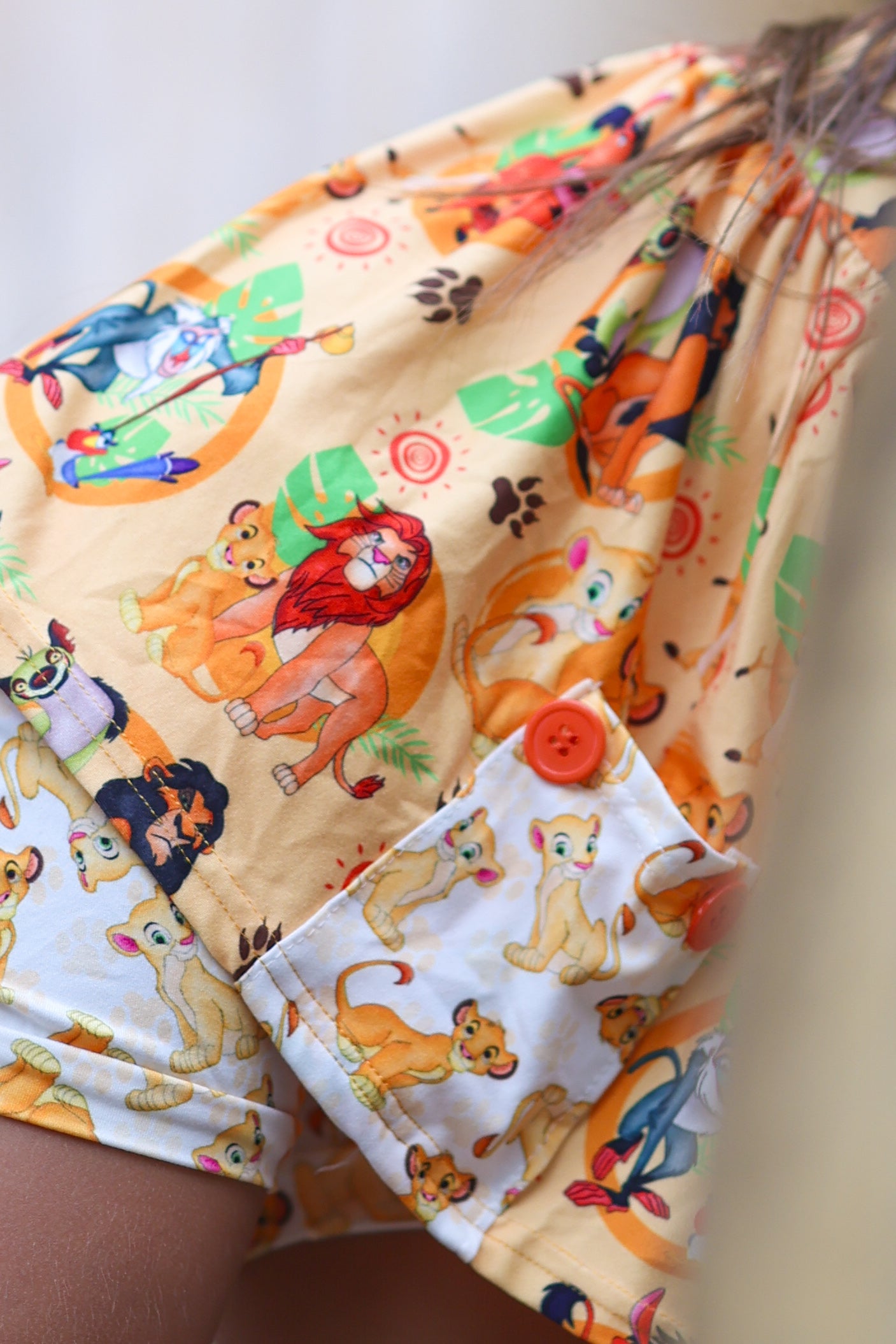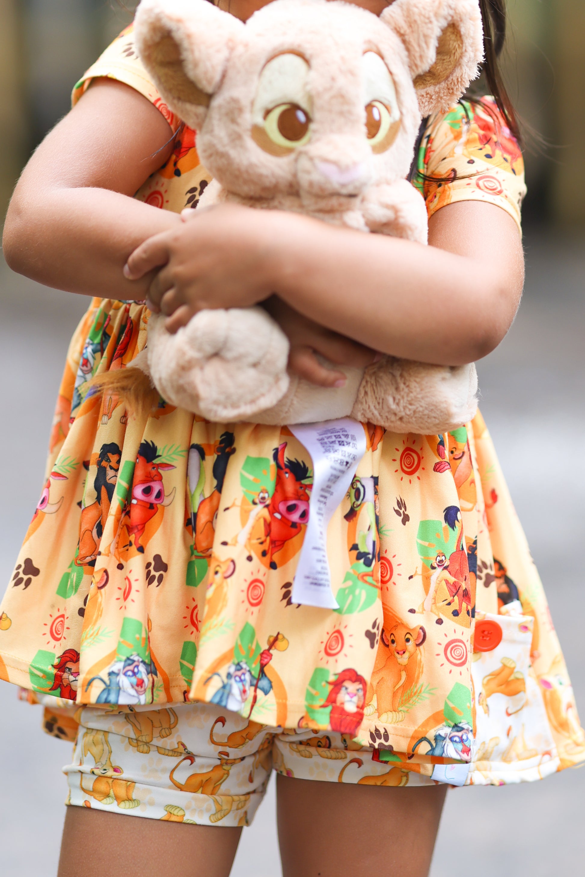 LPK is a staple these days! The Charlotte but with two prints, one with all the characters and one with just the babies. The skirt has a wide seam /ruffle. Matching shorties too.