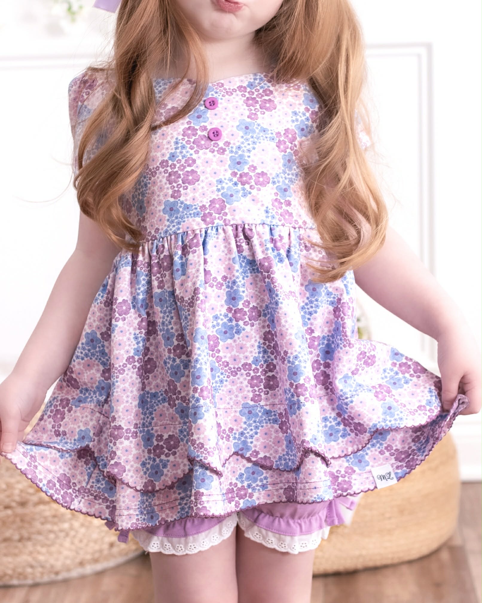 Sammy tunic set is a staple at ML, now with our adorable top skirt with scallops and scalloped stitching, it's next level. Sweetheart neckline, cap sleeves, and tie on back for the perfect fit.