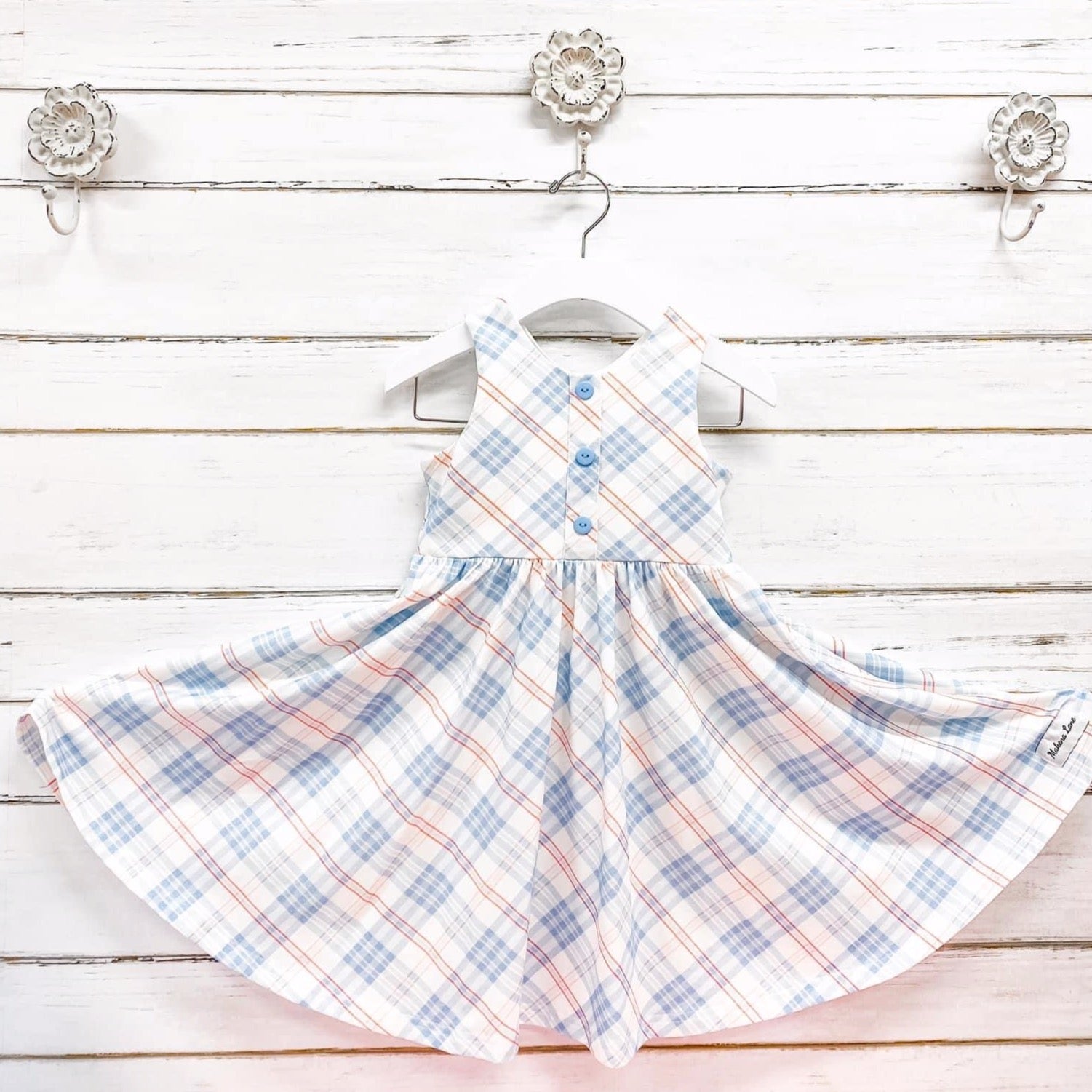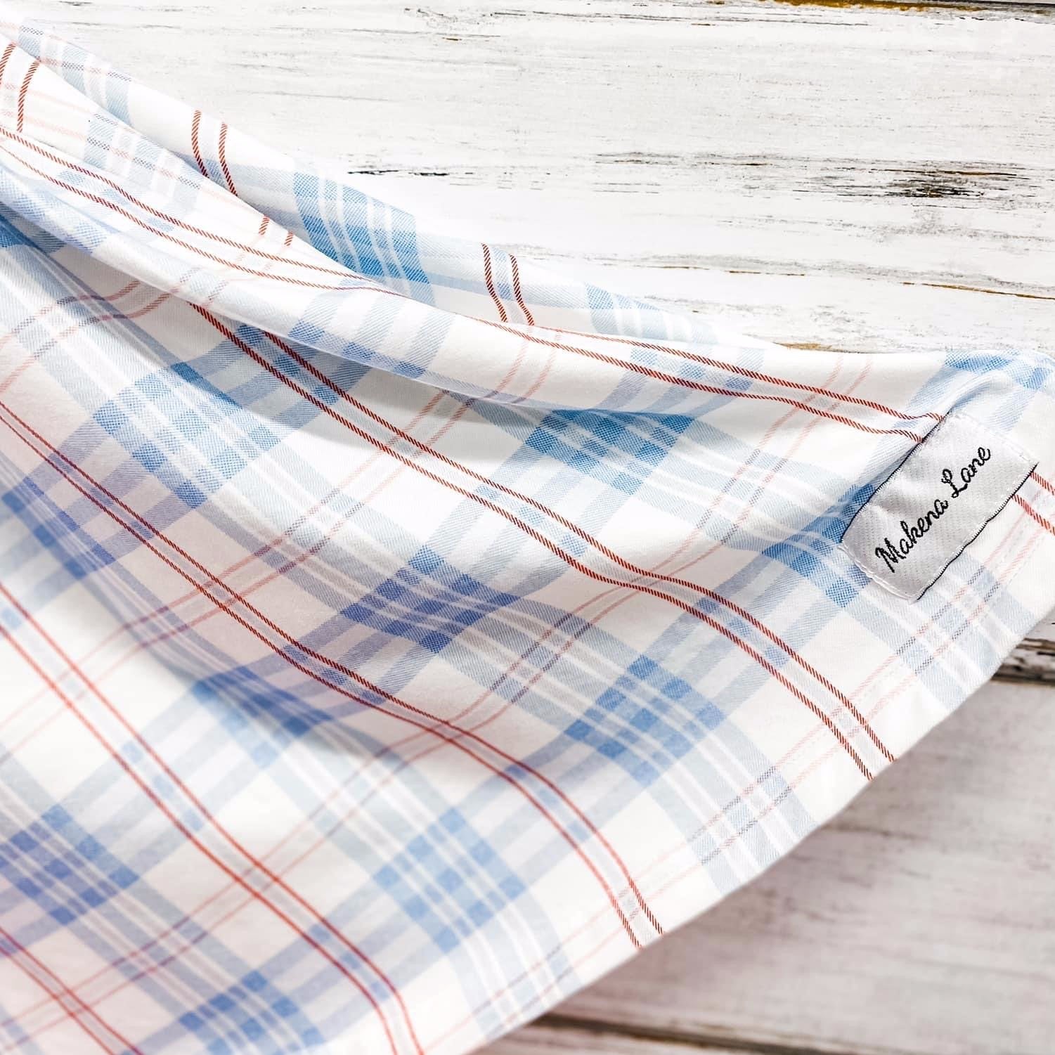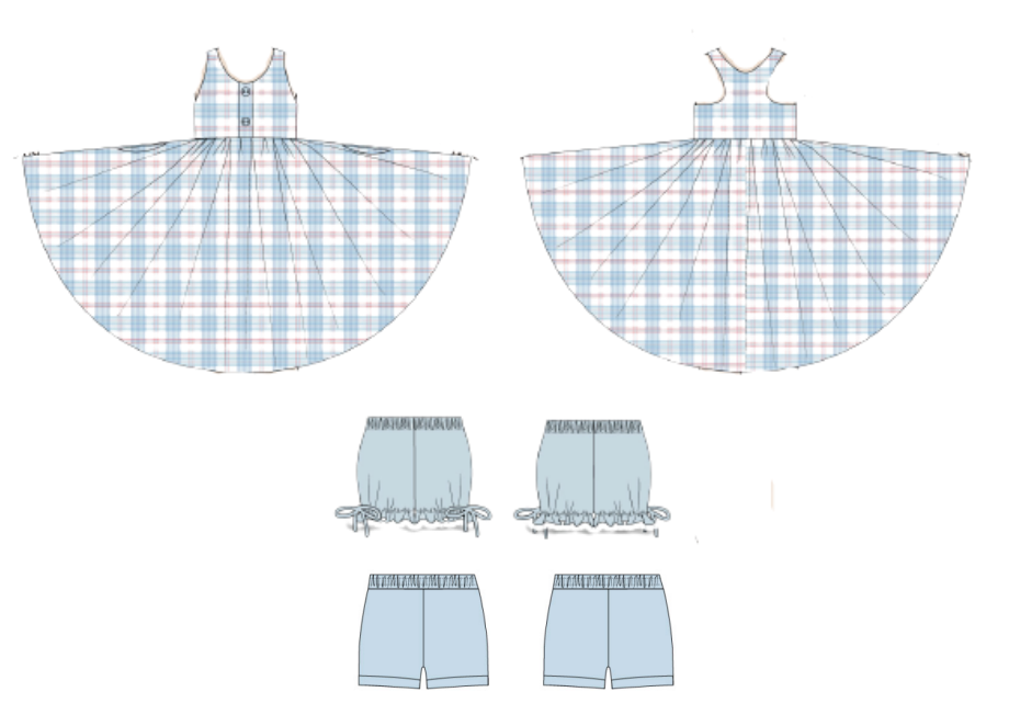 Our popular red, white, blue plaid in girls and boys swim! With red gingham accents. The twirl dress in the plaid is a perfect set to wear after the beach or pool!
