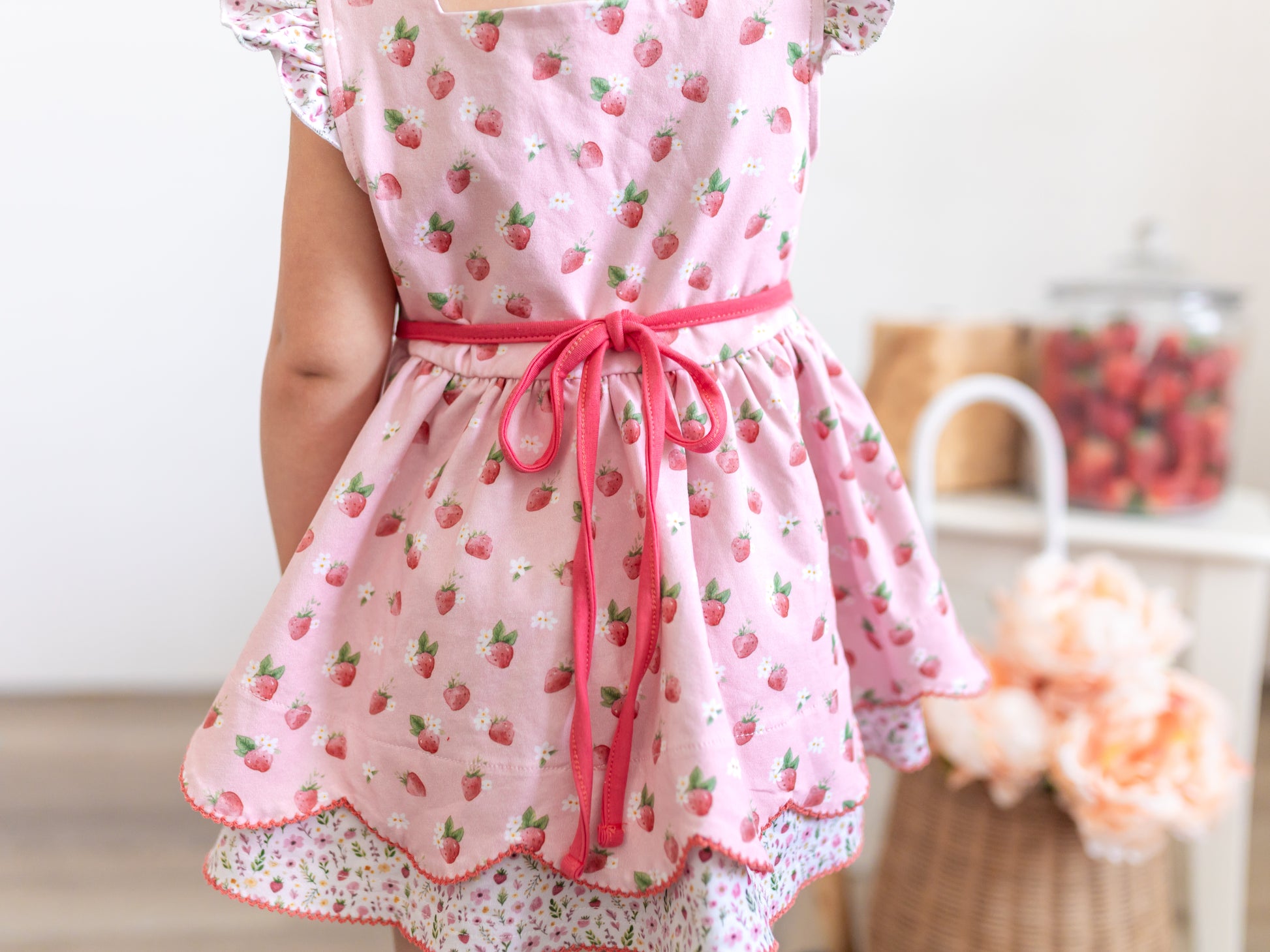 The Sammy has had many iterations over the years. This version hass flutter sleeves, a scalloped top skirt and scalloped stitching on both layers. Full circle skirt for amazing twirls, tie on back for easy fit.