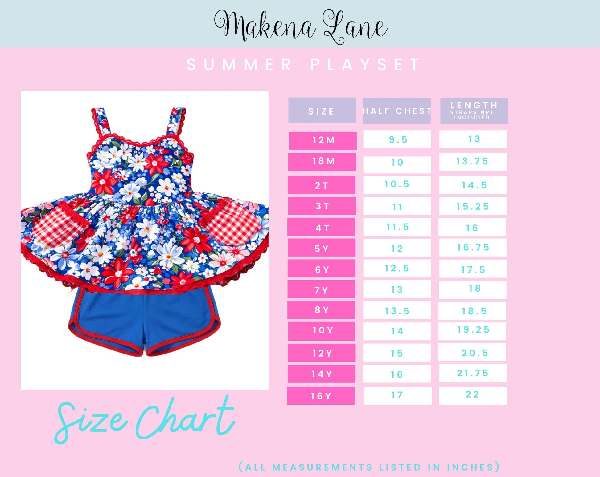 Our shop fave summer playset is back! Super soft cozy fabric, four way stretch, adjustable straps, pockets!